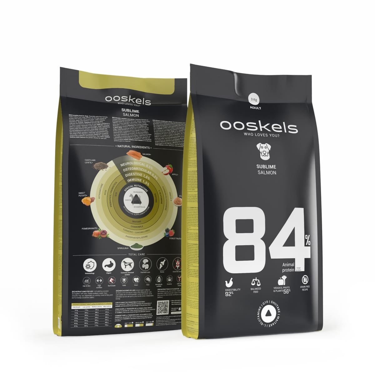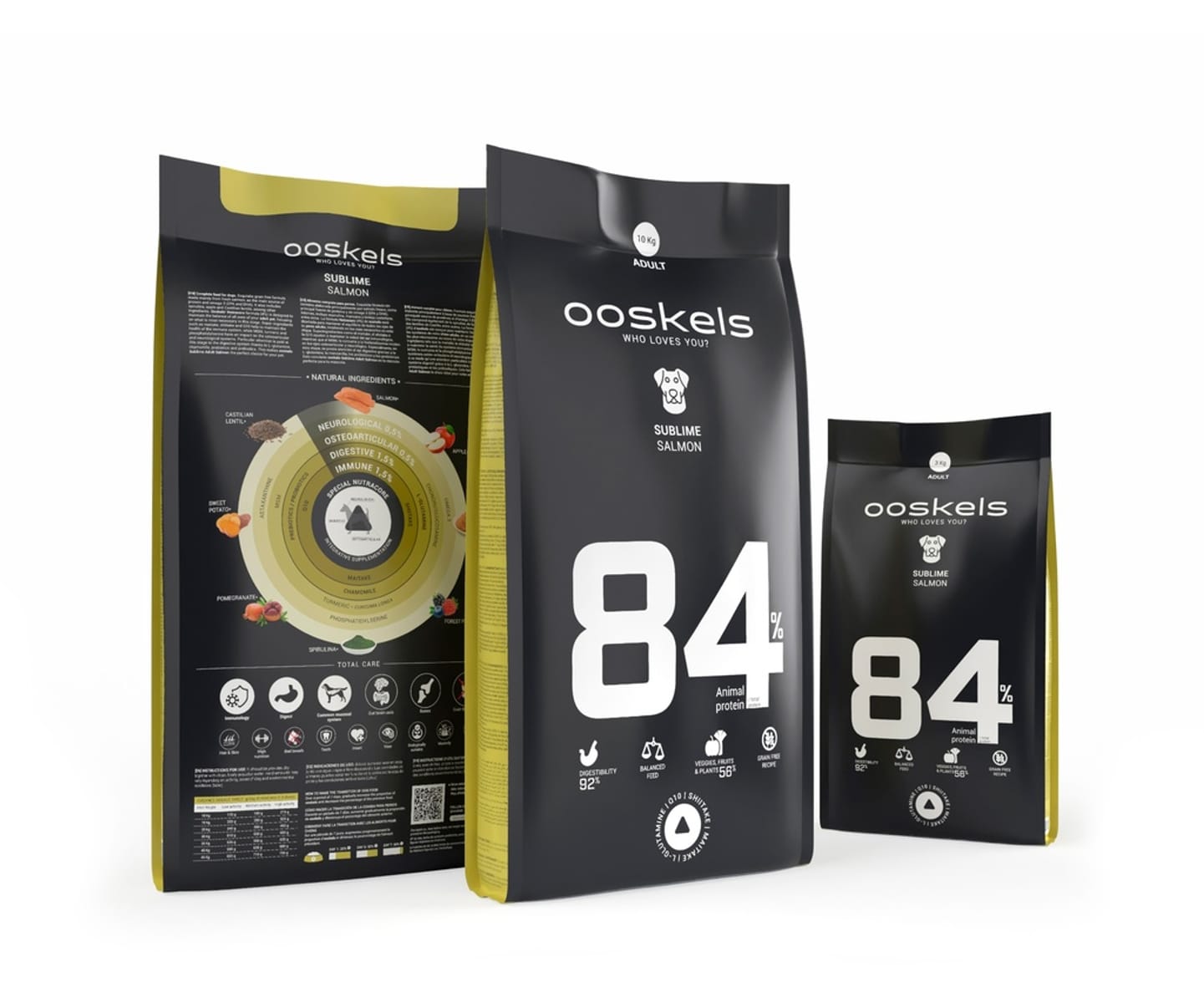 Храна за кучета СУПЕР ПРЕМИУМ КЛАС OOSKELS 84% животински протеин Сьомга 10кг.