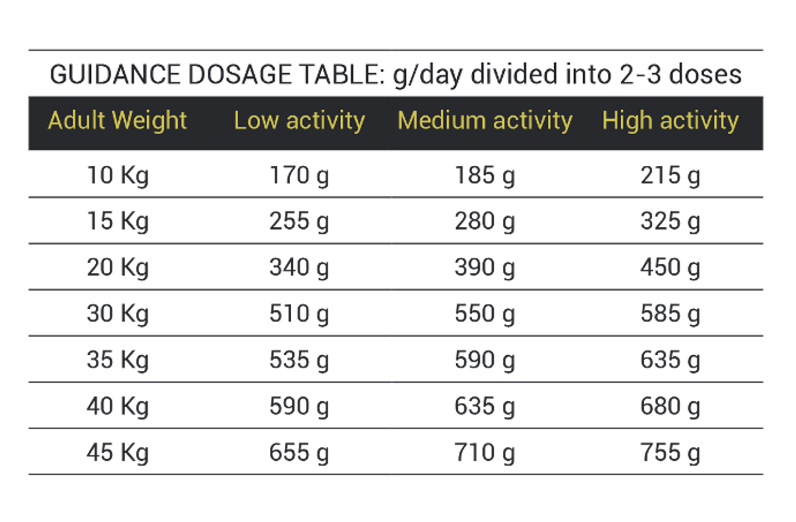 СПИСЪК НА СЪСТАВКИТЕ: Риба (прясна сьомга мин. 30%), картофи, бобови растения (кастилска леща мин. 5%), кретони, сладки картофи, животински мазнини, растителен хидролизат, бирена мая Saccharomyces cerevisiae , масло от сьомга, крил, брашно от рожков, хидролизиран растителен ароматизант, морков, тиква, ябълка, минерали, екстракт от Юка Шидигера , хондропротективен комплекс (глюкозамин хидрохлорат, хондроитин сулфат, MSM, екстракт от зеленоуста мида Perna canaliculus ), горски плодове, манан-олигозахариди, фрукто-олигозахариди, шийтаке, майтаке, Q10, водорасли и билки (невен, градински чай, спирулина, сминдух, лайка, копър, мащерка, листа от моринга, куркума, шипка), таурин, лигноцелулоза, пребиотици, растителни екстракти (цитрусови плодове, нар, семена от бял трън, семена от зелен чай, розмарин), естествени антиоксиданти, L-глутамин, астаксантин, фосфатидилсерин, пробиотици ( E. faecium NCIMB 10415 15x106 CFU), L-карнитин.