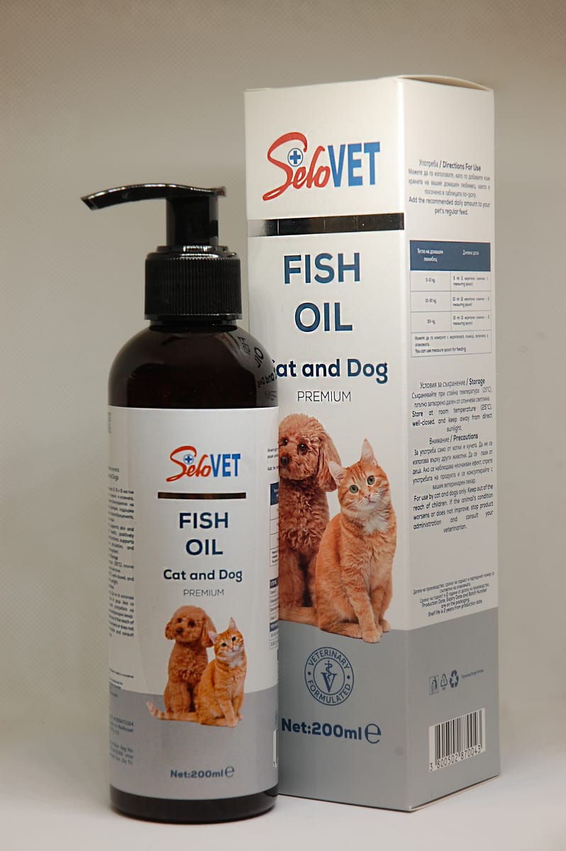 Рибено масло ПРЕМИУМ - богато на омега 3, 6, 9 мастни киселини, подходящо за кучета и котки - 200 мл