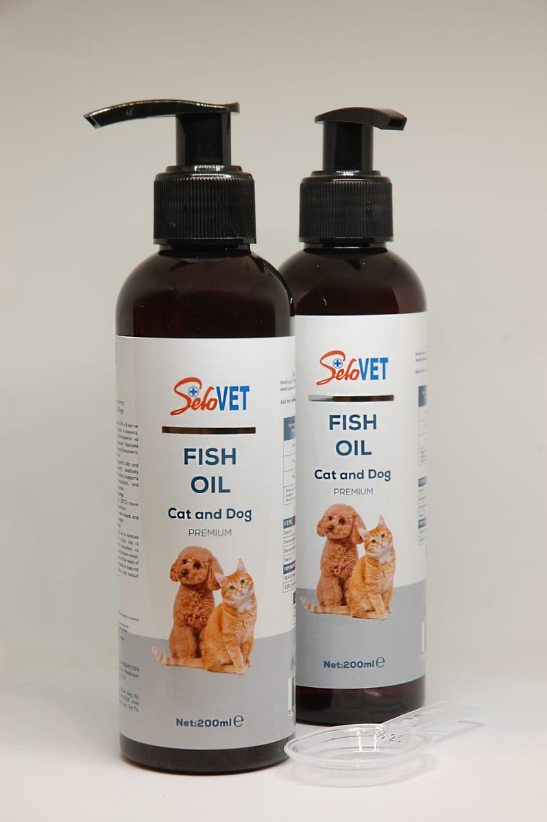 Рибеното масло със съдържание на омега 3,6 и 9 мастни киселини, поддържа здравето на кожата и козината, поддържа здравето на ставите, влияе благоприятно на репродуктивните органи и функции на организма, поддържа когнитивната функция, подпомага сърдечната дейност, подобрява кръвообръщението и засилва имунната система. Начин на прилагане: може да го използвате като го добавите към храната на вашия домашен любимец в определената доза (0-10 кг: 5мл или 1 мерителна лъжичка; 10-30 кг: 10 мл или 2 мерителни лъжички; над 30 кг: 15 мл или 3 мерителни лъжички). Дозата се препоръчва да се разпредели съгласно броя хранения.